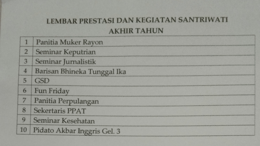 Mungkin bagi para santri lain pada umumnya, berkegiatan semacam ini terkesan biasa saja. Sesuatu yang biasa dijalani, sebagai upaya meningkatkan kualitas diri dan kedisiplinan serta kreativitas.