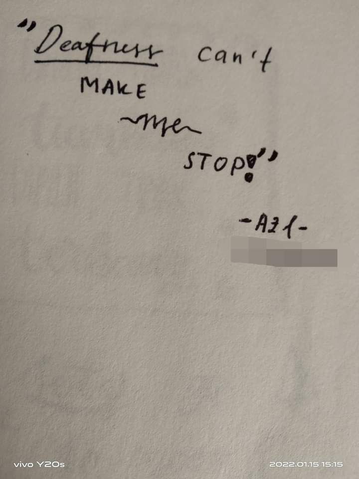 Dia yang lebih dari 18 tahun lalu baru terdiagnosa tunarungu, yang kami kira nyaris tak ada harapan untuk masa depannya, ternyata justru mampu mandiri dan berdikari di usia yang ke-21 tahun ini. Kuasa Allah adalah penentu utama di atas segalanya. Ikhtiar yang kami lakukan sebagai orang tuanya, hanya sebatas pembuka jalan semata. Semangat dan motivasi dalam diri putri kami merupakan bahan bakar penentu agar semua upaya bisa sesuai dengan apa yang kami harapkan. Semua elemen bersinergi, mendorong perkembangannya hingga mampu mencapai titik ini.
